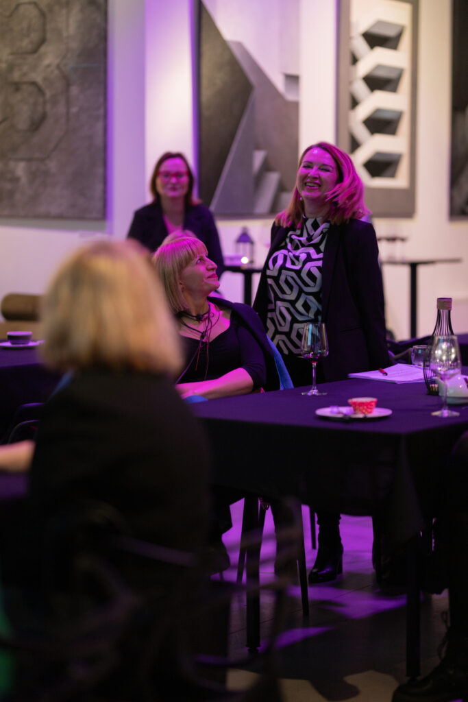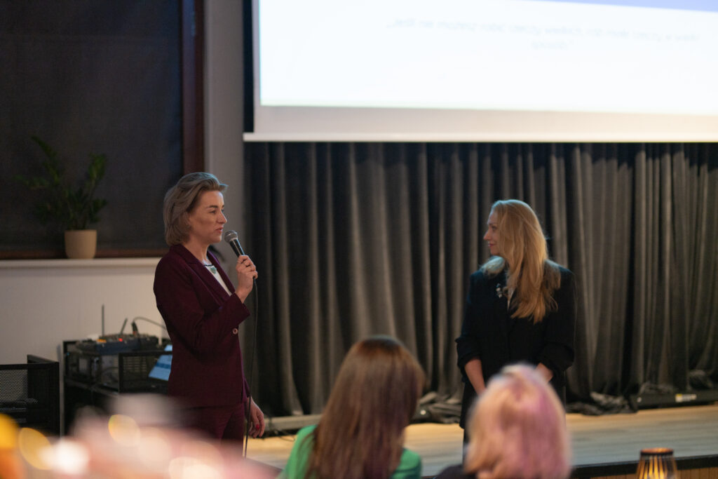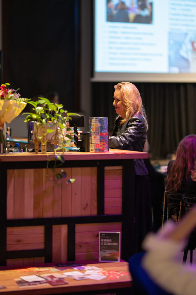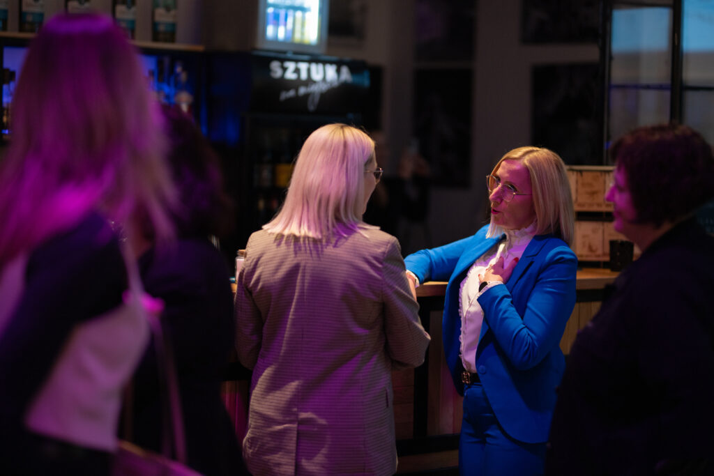 Po części merytorycznej przyszedł czas na Randkę Biznesową – dynamiczną sesję networkingową, w której uczestniczki miały okazję w krótkim czasie poznać potencjalne partnerki do współpracy. Wymieniałyśmy się doświadczeniami, pomysłami i wizytówkami, budując sieć wartościowych kontaktów. Atmosfera była pełna energii, otwartości i chęci wspólnego działania.