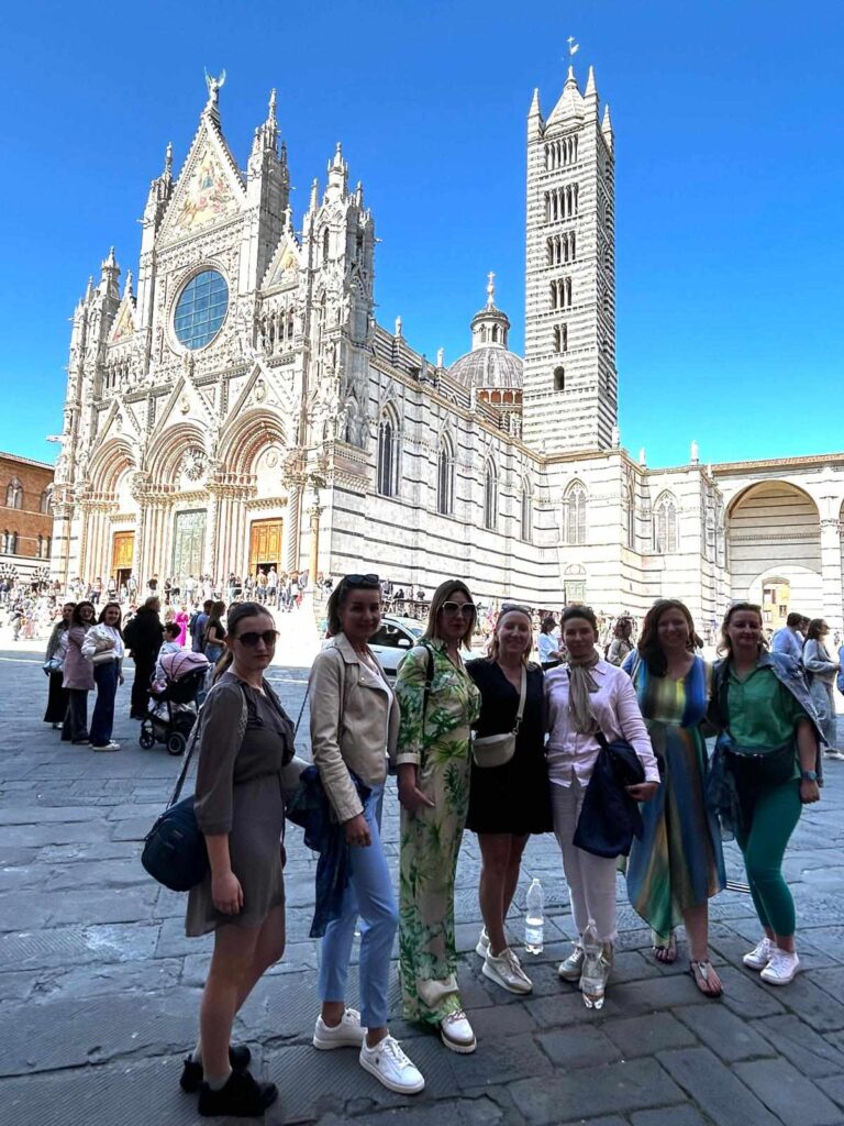 Naszą podróż rozpoczęłyśmy w Sienie, mieście o niezwykłej historii i średniowiecznym klimacie. Spacerowałyśmy wąskimi uliczkami prowadzącymi do słynnej Piazza del Campo, gdzie poczułyśmy prawdziwego ducha Toskanii. Zwiedziłyśmy również majestatyczną Katedrę w Sienie, podziwiając jej niezwykłą architekturę i detal.