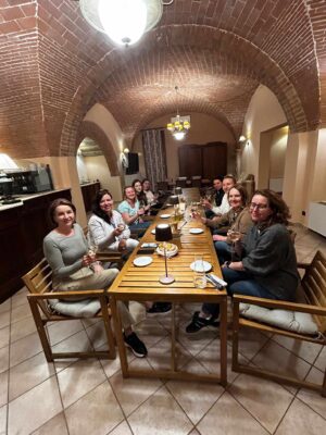Wieczorami przenosiłyśmy się w bajkowy klimat toskańskich winnic. Podczas wyjątkowej degustacji win miałyśmy okazję poznać tajniki lokalnej produkcji, porozmawiać z właścicielem rodzinnej winnicy i oczywiście – spróbować wyśmienitych win Chianti. Wśród win, serów i oliwy z oliwek rozmawiałyśmy o życiu, marzeniach i biznesie w duchu kobiecej siły i wzajemnego wsparcia.
